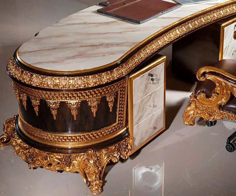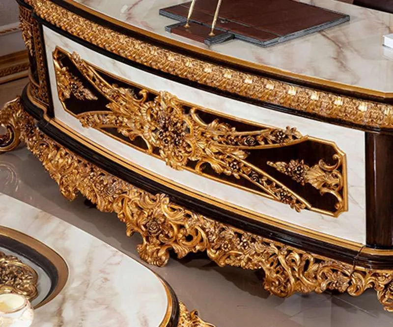 Our luxury boss office tables are not just furniture; they are a testament to exceptional craftsmanship. Each piece is designed with precision and care, utilizing traditional techniques that highlight the natural beauty of the wood. The hand-carved details bring character and uniqueness to your office, making it a standout feature in any room. The gold leaf embellishments catch the light beautifully, creating an inviting atmosphere that inspires creativity and productivity. This is more than just an office table; it’s an investment in quality that will enhance your professional image for years to come.